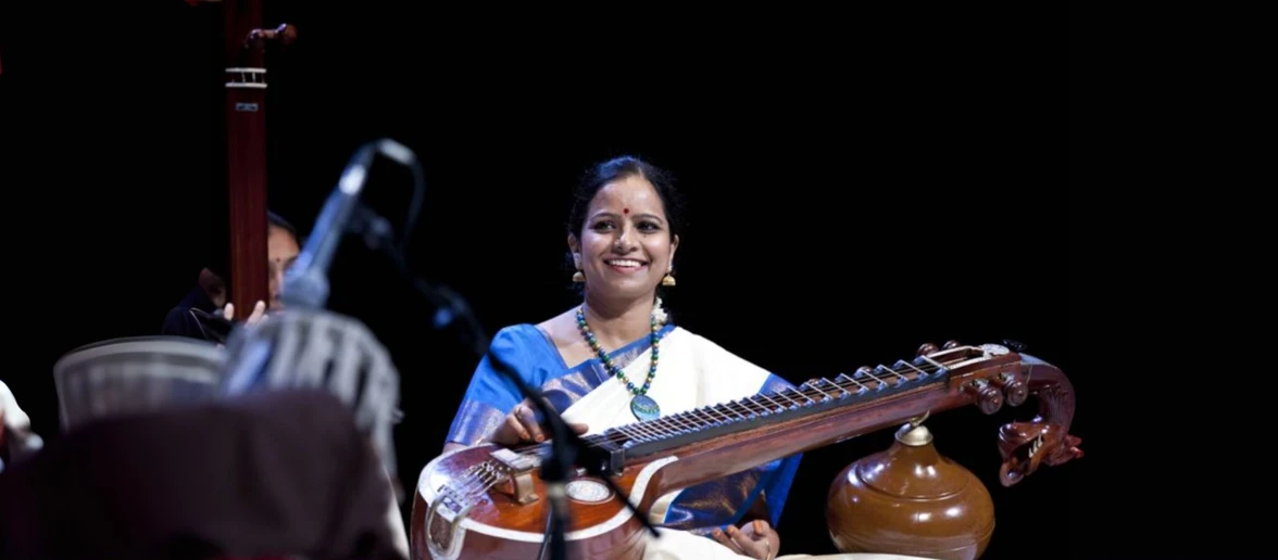 Jayanthi Kumaresh is an Indian veena musician and comes from a family of musicians who has been practicing Carnatic music for 6 generations. A researcher, Jayanthi holds a doctorate for her work on "styles and playing techniques of the Saraswati veena" and conducts workshops and lecture demonstrations around the world. She composed and released “Mysterious Duality” which is a multi-dimensional reflection of the simple yet complex self - through a single instrument - The Saraswati Veena.